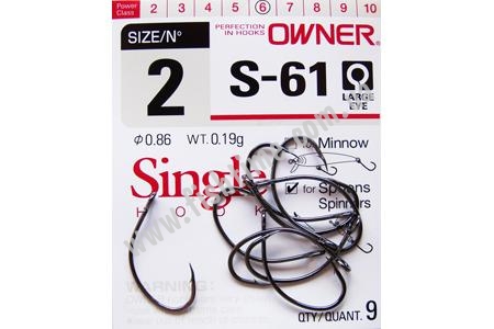 Одинарный крючок Owner 9 шт широкое кольцо Black Chrome S-61-02
